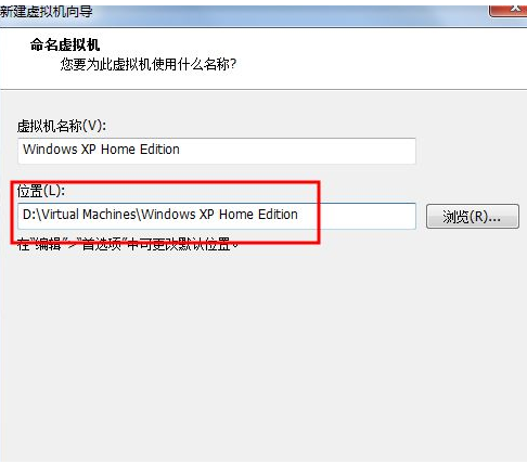 5、需要安裝的xp系統的版本,輸入vm虛擬機的名字,選擇儲放的位置。