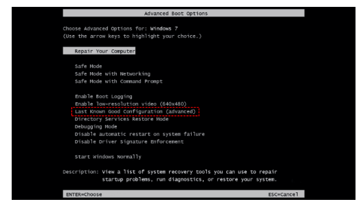 2. 然后您將看到您可能使用的工具列表,選擇Last Known Good Configuration (advanced)。
