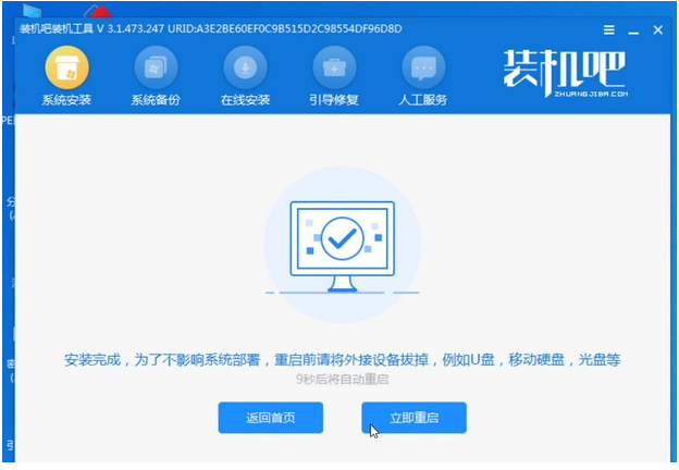 4、當進入pe系統,耐心等待軟件安裝系統完成之后,點擊立即重啟。