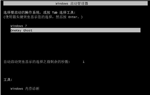 5.重啟電腦時進入到啟動項界面,我們選擇”OneKey Ghost“回車進入系統即可。