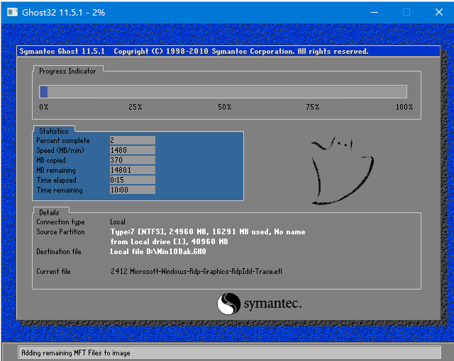 6.進入到ghost系統部署,我們耐心等待,最后重啟電腦進入系統就可以啦。