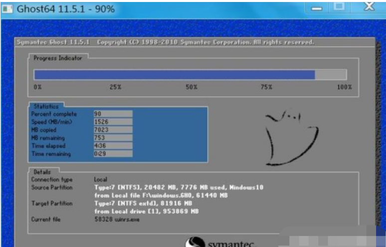 3、當確認安裝之后,就會開始復制Win10文件到D盤,時間大約五六分鐘,這個過程是在Windows窗口進行的,進入復制后,就不要亂動鍵盤,以免復制出錯。