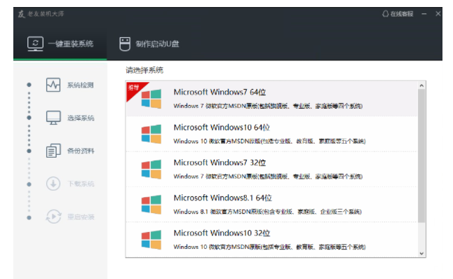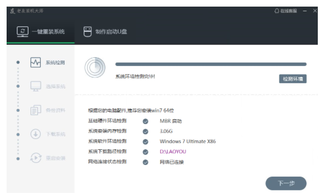 1、下載并打開老友一鍵重裝系統軟件,等待自動檢測完成。