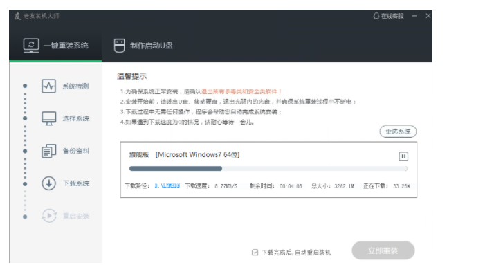 4、選擇的系統版本。系統文件下載完成后,將重新啟動計算機部署和安裝系統。