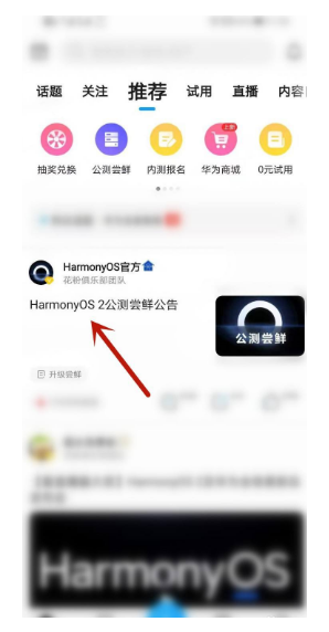 2、點擊進入鴻蒙系統的公告。