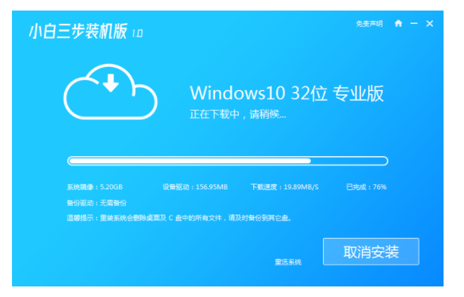 1、下載并運行小白三步裝機版,選擇所要安裝的win10系統進行安裝。