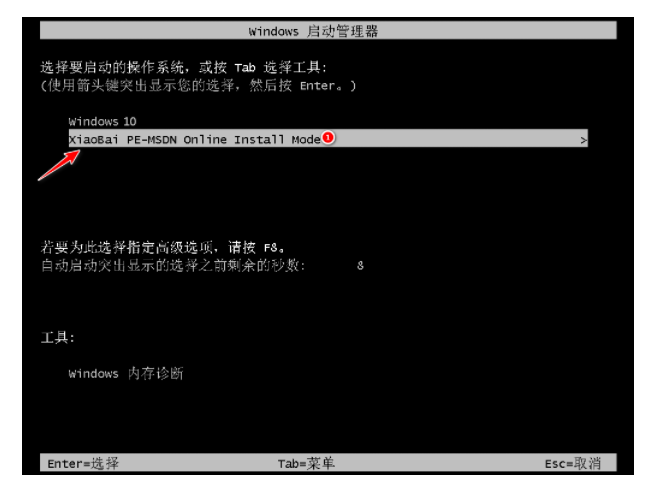 5、選擇XiaoBai PE-MSDN Online Install Mode,然后按回車進入 Windows PE 系統。