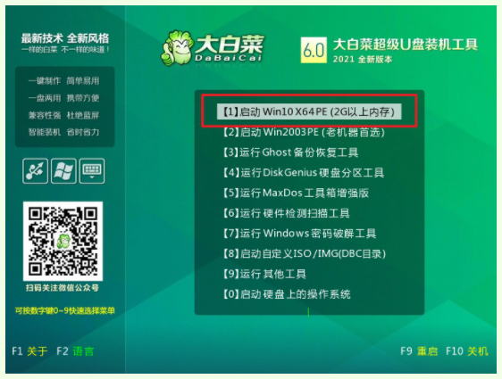 4、u盤啟動盤制作成功后,插入電腦中,隨后重啟電腦。等電腦屏幕出現開機畫面時,不斷按U盤啟動快捷鍵,設置U盤啟動進入winpe界面。
