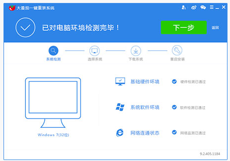 2、運行該軟件,點擊“立刻重裝”進入檢測后在進行下一步。