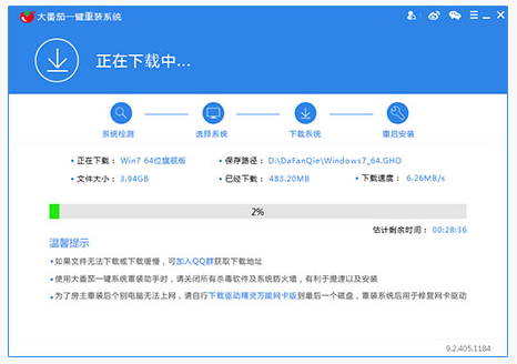 1、通過大番茄一鍵重裝系統點擊立即重裝。