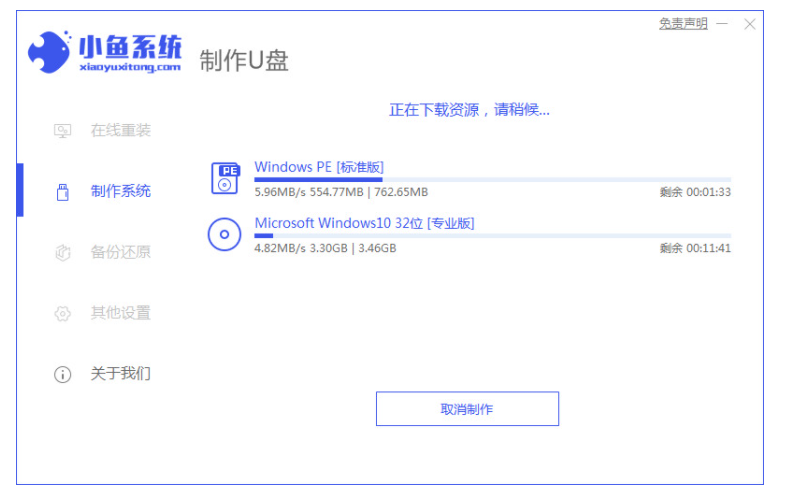 1、將u盤插到電腦當中,打開【小魚一鍵重裝系統】軟件,選擇開始制作按鈕。
