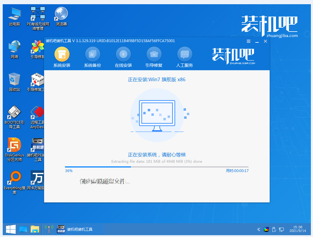 5、進入pe系統后,軟件會自動安裝系統,稍作等待。