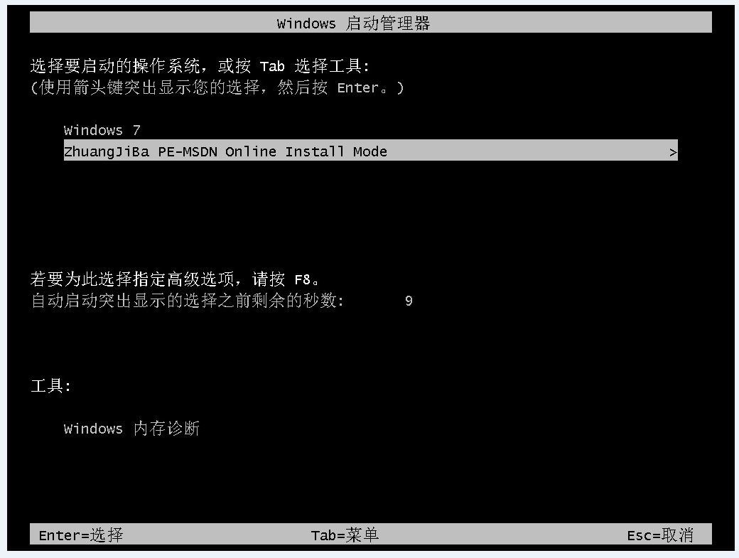 4、進入啟動管理器頁面后選擇第二項,然后回車進入裝機吧pe系統。