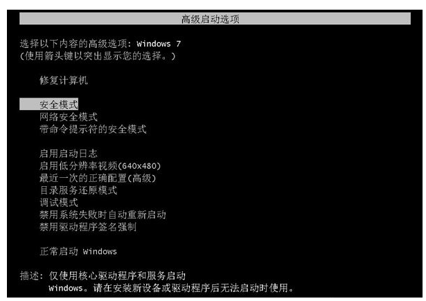 嘗試重新開機,開機后快速按 F8 進入高級模式,然后選擇恢復最近一次的正確配置選項。