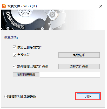 2、勾選所有的恢復選項,然后點擊"開始"按鈕,工具就會開始搜索丟失的數據。