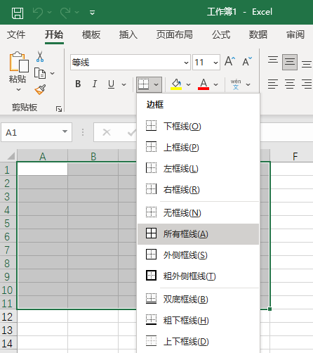 2、在【字體工具欄中】,點擊表格圖標,選擇邊框類型。