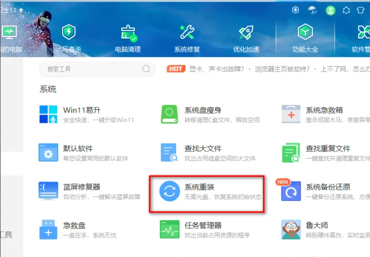 3、選擇里面的系統重裝。