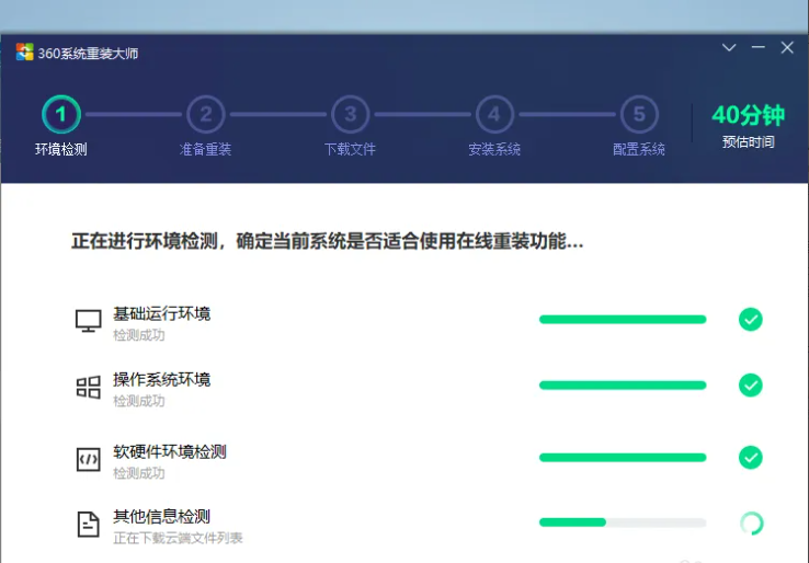 2、依次點擊進行環境檢測,繼續重裝;
