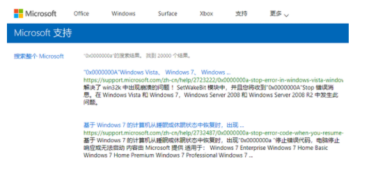 4、在代碼查詢頁面點擊搜索,會跳轉到微軟的官網,可以在微軟官網內查找相關的藍屏信息。