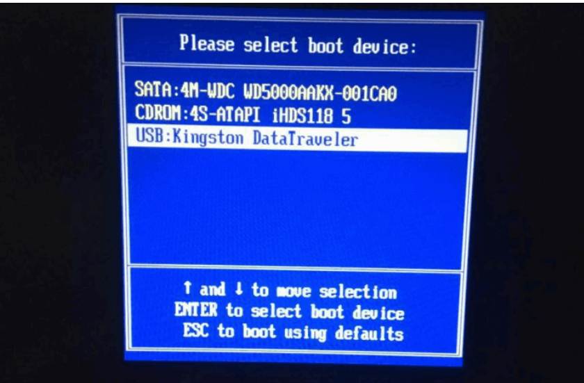 4、將制作好的啟動u盤插入需要重裝的電腦,屏幕出現啟動選擇項后,選擇USB選項,按下回車鍵進行u盤啟動。