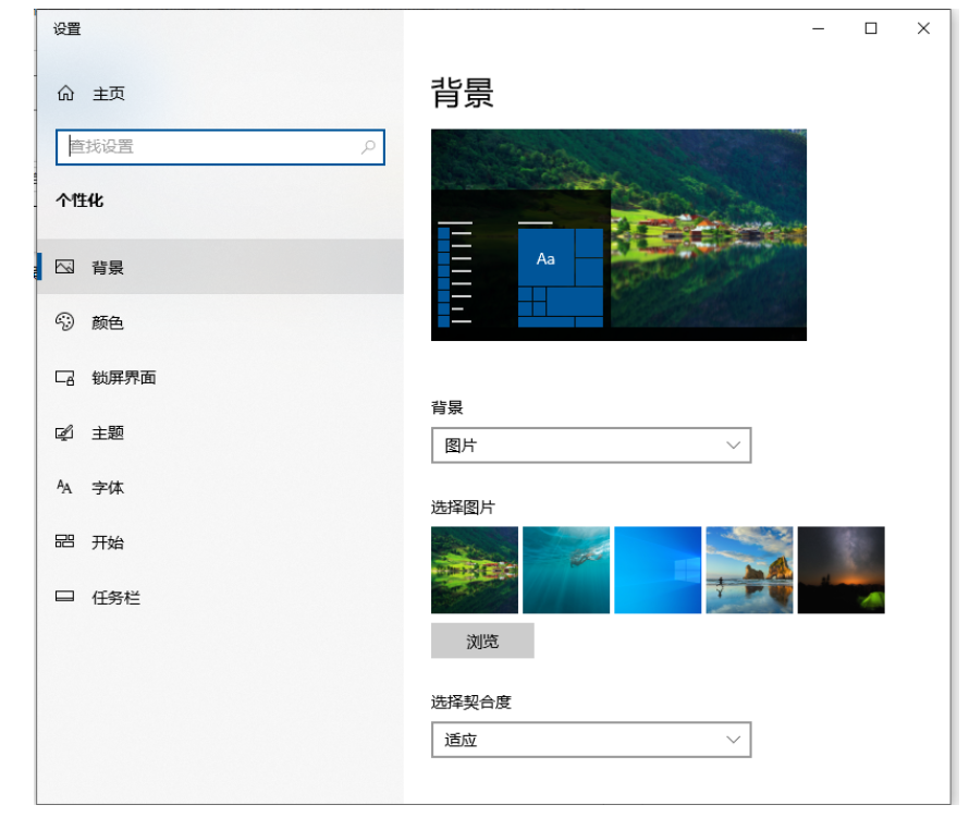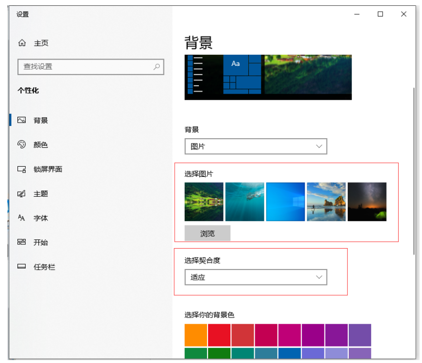 3、看到"選擇圖片",這里面是系統自帶壁紙,點擊選擇以后,可將其設置成桌面壁紙,