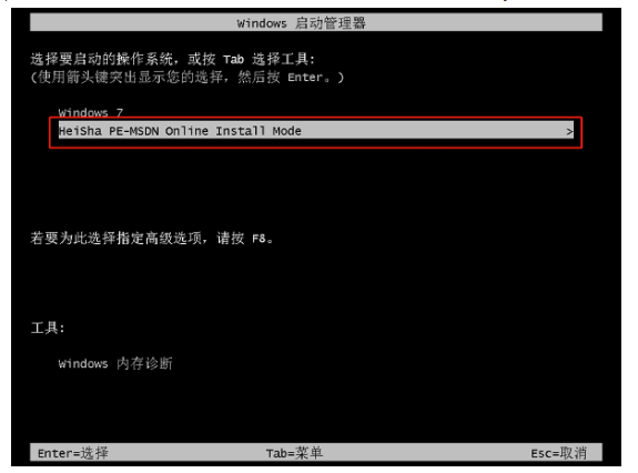 7、選擇“HeiSha PE”模式回車進入。