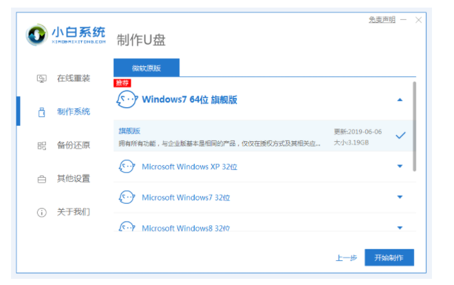 2、選擇所需制作的系統,點擊下方的開始制作。