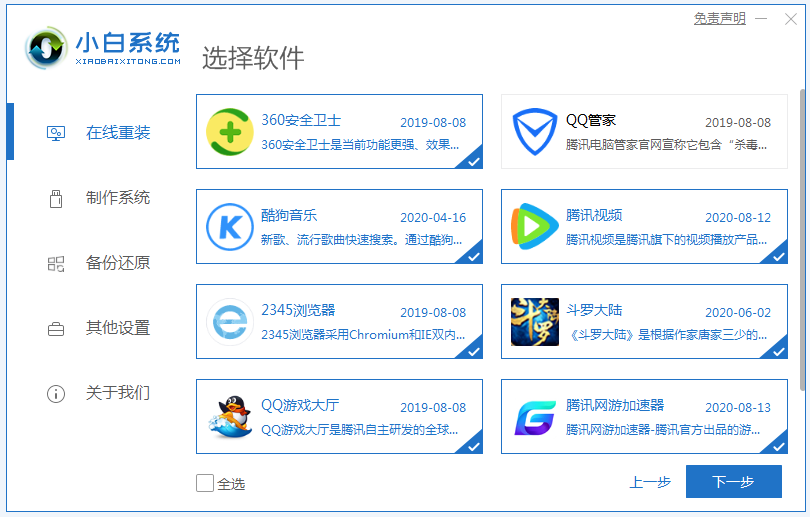 3、接下來選擇計算機需要安裝的軟件,勾選后,點擊 下一步,如下圖所示: