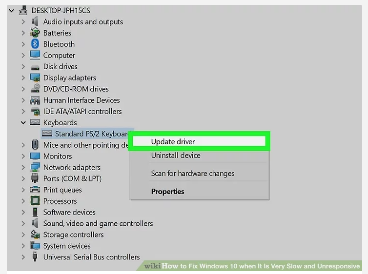 2、滾動到并選擇緩慢且無響應的類別。根據您計算機上的哪些功能緩慢或無響應,單擊您要更新的硬件類別旁邊的箭頭。例如,如果您在輸入時注意到延遲,您可以選擇“鍵盤”。