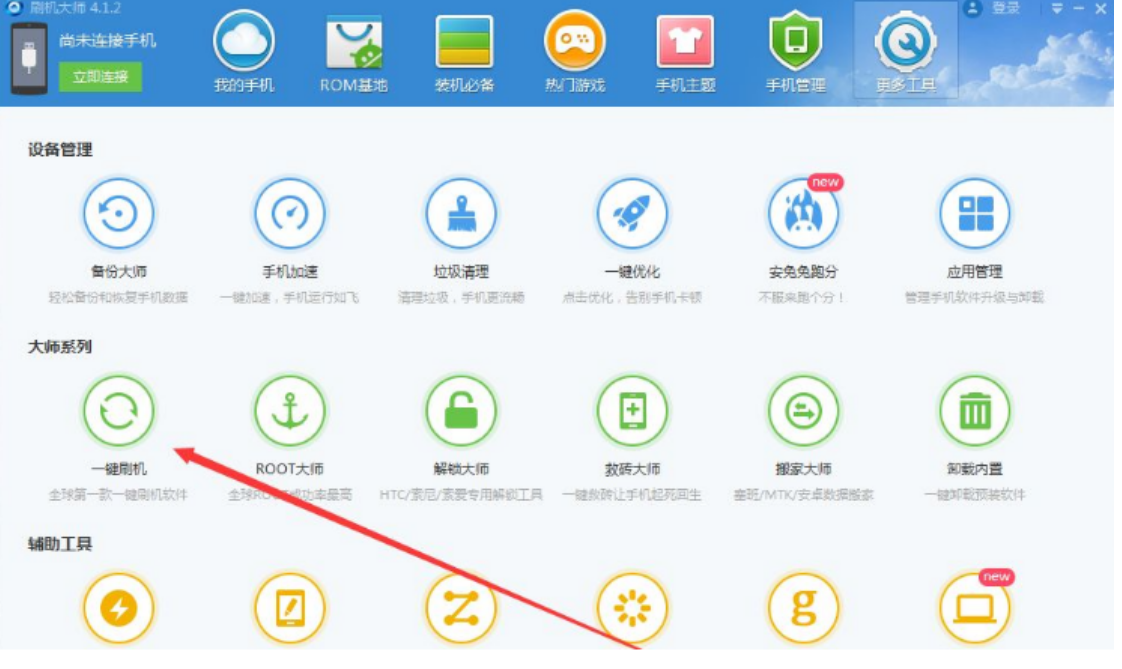 1、下載安裝刷機大師工具并打開在這之前要備份好資料。
