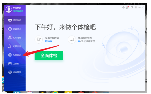 1、打開桌面上的【騰訊電腦管家】軟件,點擊左側菜單欄中的【權限雷達】選項。