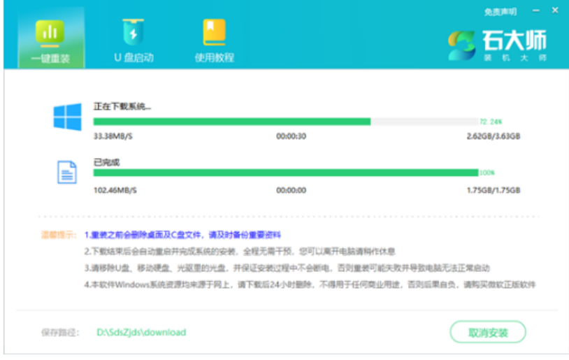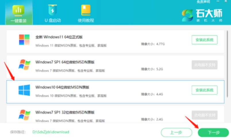 1、下載并運行石大師一鍵重裝,選擇需要重裝的系統。