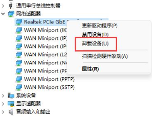 3、找到網卡驅動,右鍵選擇“卸載設備”,卸載完成后重啟電腦即可修復。