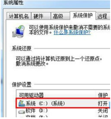 4、檢查C盤有沒有開啟系統保護原因,打開就行,具體操作是:在“計算機”圖標上鼠標右鍵點擊選擇屬性,點擊左側的系統保護,看看是否C盤開啟了系統還原,如果沒有的話,鼠標點擊配置,在打開的配置窗口中,選擇“還原系統配置和以前版本的文件”即可。