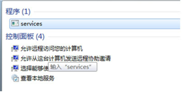 2、鼠標點擊“開始——搜索”,在搜索框中輸入“services”命令按回車鍵,在搜索出的services.exe上鼠標雙擊打開服務管理器;