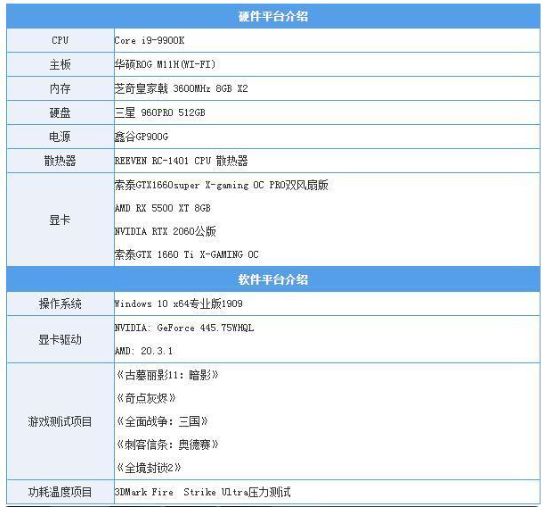 這次要進行測評的顯卡就是GTX 1660 SUPER和GTX 1660 Ti,RX 5500 XT 8GB版,RTX 2060了。那么現在先來給大家介紹一下我們此次測評的硬件設施