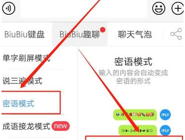 3、選擇BiuBiu趣聊,點擊左側的密語模式。