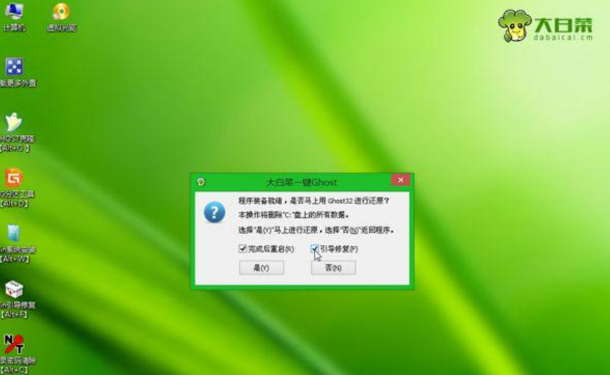 8、彈出這個提示框,勾選“完成后重啟”和“引導修復”,點擊是開始執行。
