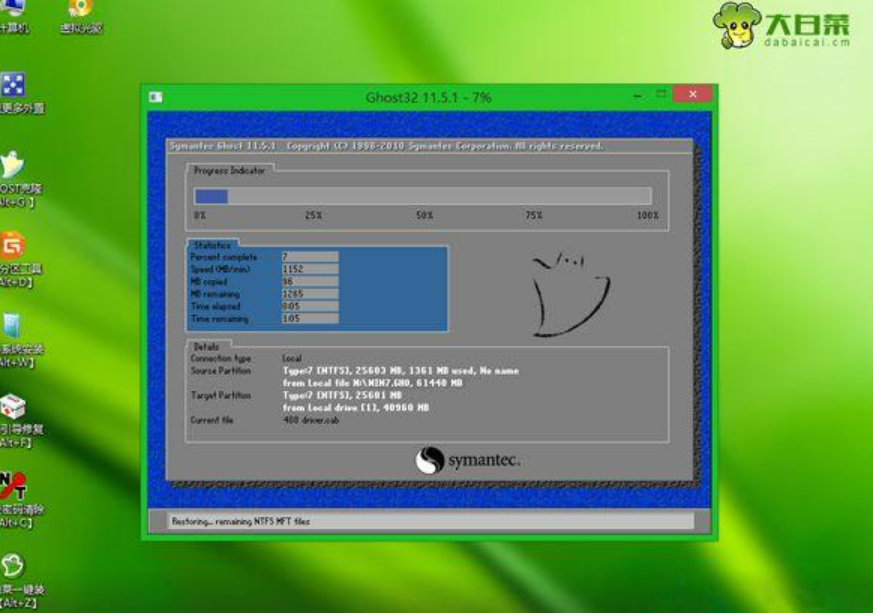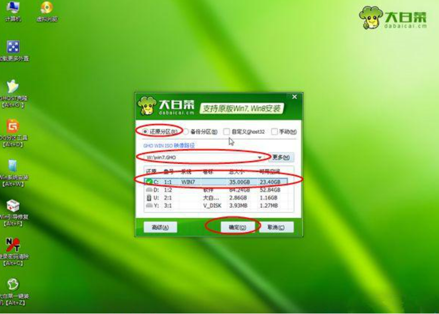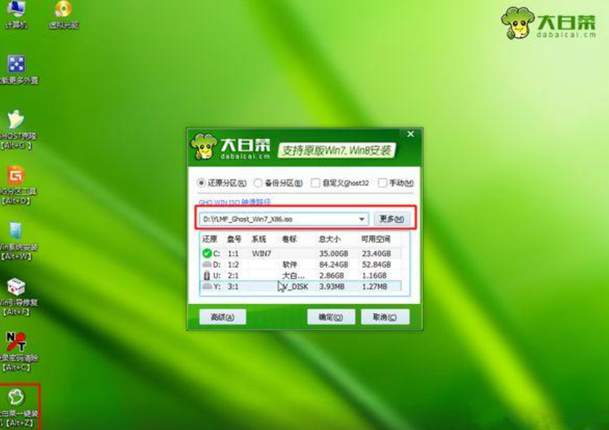 6、完成分區之后,打開【大白菜一鍵裝機】,映像路徑選擇系統iso鏡像,然后選擇gho文件。