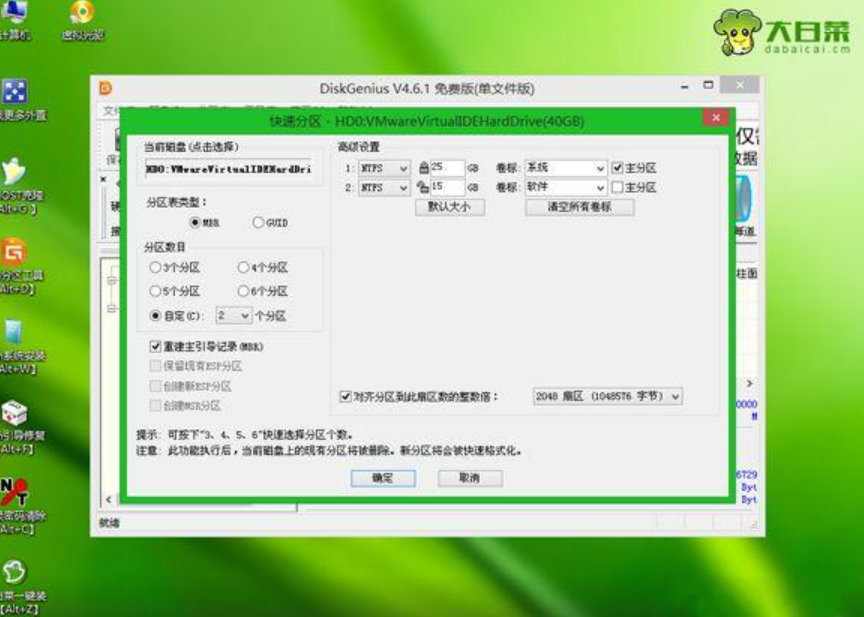 5、重新設置分區數目和分區的大小,建議c盤35G以上,執行硬盤全盤格式化以及分區過程。