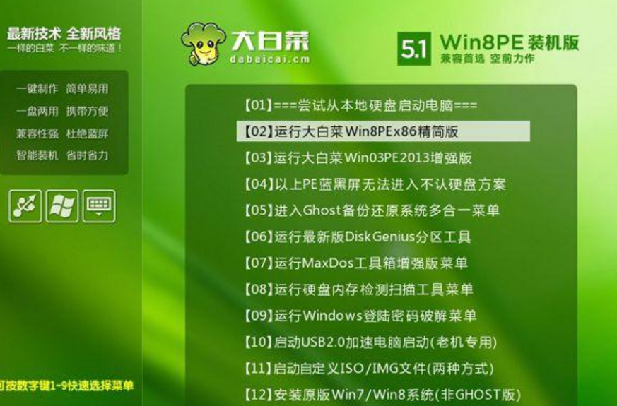 3、在菜單界面選擇【02】選項回車,啟動pe系統。