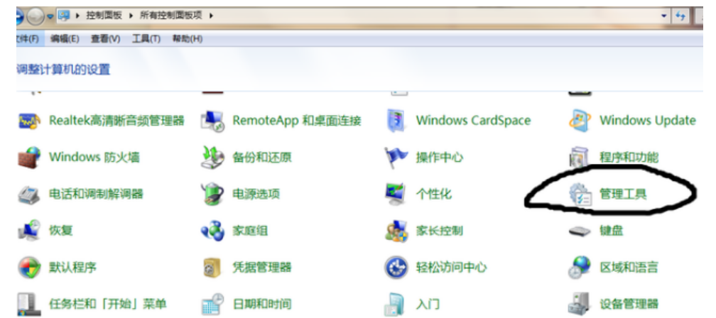 2、進入控制面板主頁,選中:管理工具。