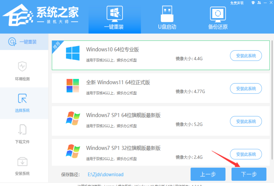 1、進入系統之家裝機大師工具,選擇安裝Windows10 64位系統。