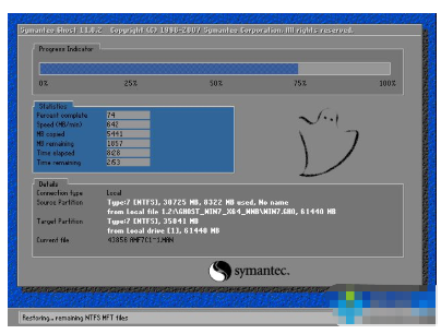 7、隨后進入如下界面,執行C盤格式化以及系統映像安裝到C盤的部署過程,需要等待3-5分鐘;