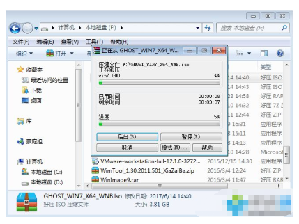 2、隨后彈出對話框,等待執行光盤映像文件解壓過程;
