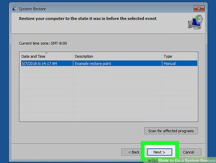 9、隨后選擇一個還原點,注意:確保還原點名稱左側的日期準確無誤。
