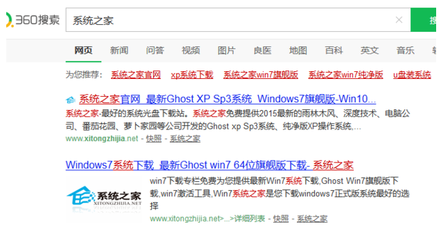 1、使用360瀏覽器搜索“系統之家”,進入官方網站: