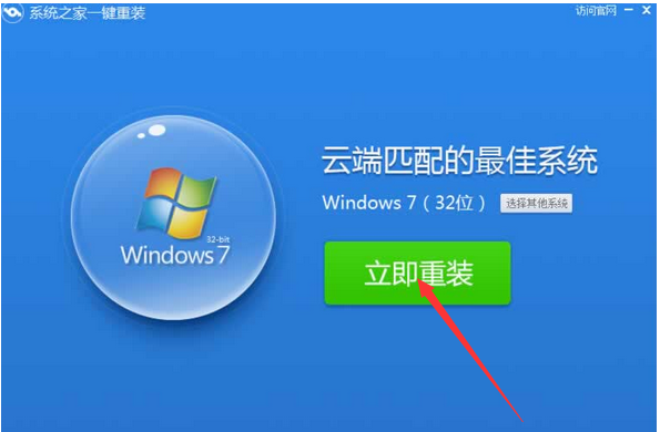 3、下載好后打開系統之家,點擊“立即重裝”。見下圖: