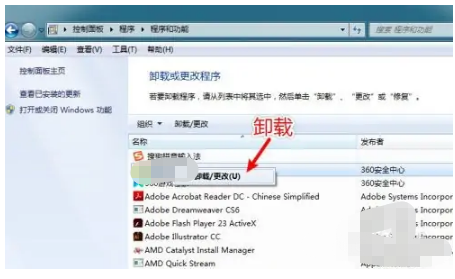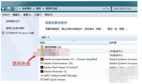 3、在卸載程序界面,鼠標右鍵點擊360系統重裝大師卸載。