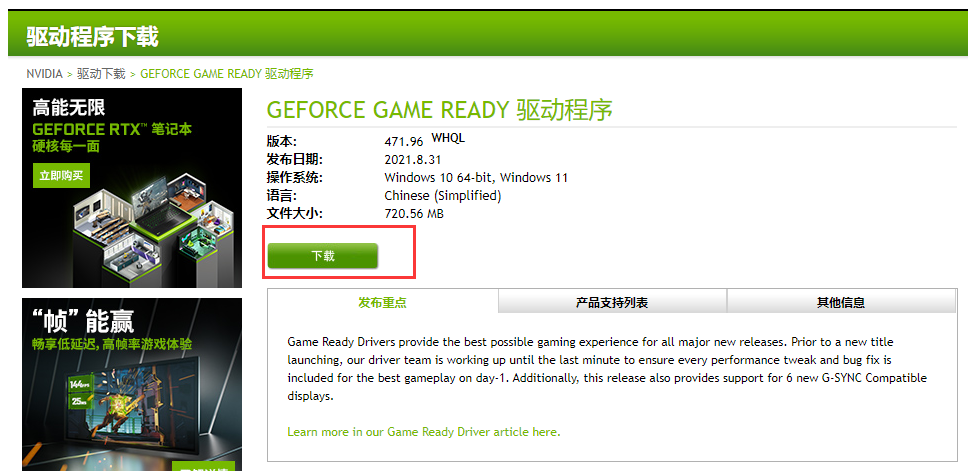 3、接著點擊下載,下載完成后,即表示顯卡驅動更新完成。